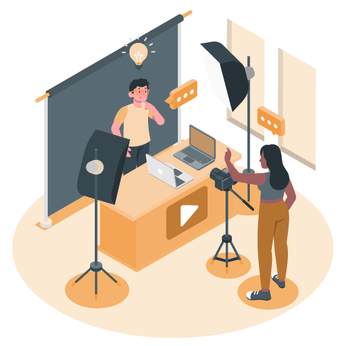 تقنيات تقديم الذات بثقة واحترافية أمام الكاميرا. جلسات تدريب مع تعليقات فورية لتحسين الحضور أمام الكاميرا